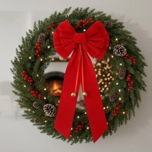 A piros, csengőkkel díszített karácsonyi masni gyorsan felhelyezhető arany drótjával, tartós poliészter anyaga pedig évekig megőrzi formáját és színét. Szalagjai elegánsan leomlanak, így bármely ajtót, koszorút vagy ajándékcsomagot látványosan feldob.