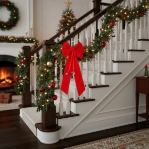Adj ünnepi ragyogást otthonodnak ezzel a látványos, piros karácsonyi masnival, amelyhez két csilingelő aranyszínű csengő és hajlékony drót tartozik a gyors rögzítéshez.