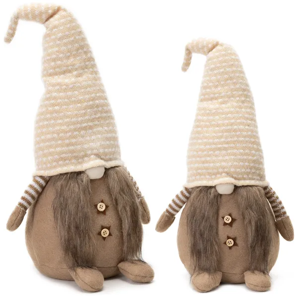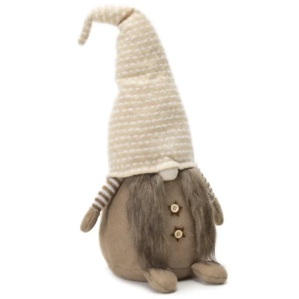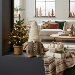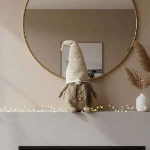 Karácsonyi skandináv manó dekoráció hangulatos kiegészítő az ünnepi otthonhoz. Puha textilből készült, visszafogott fehér–szürke–barna–krém színekkel, így könnyen illeszkedik modern és klasszikus karácsonyi díszítéshez is. A sapkába rejtett drót miatt tetszés szerint formázható és beállítható, így minden elrendezésben mutatós.