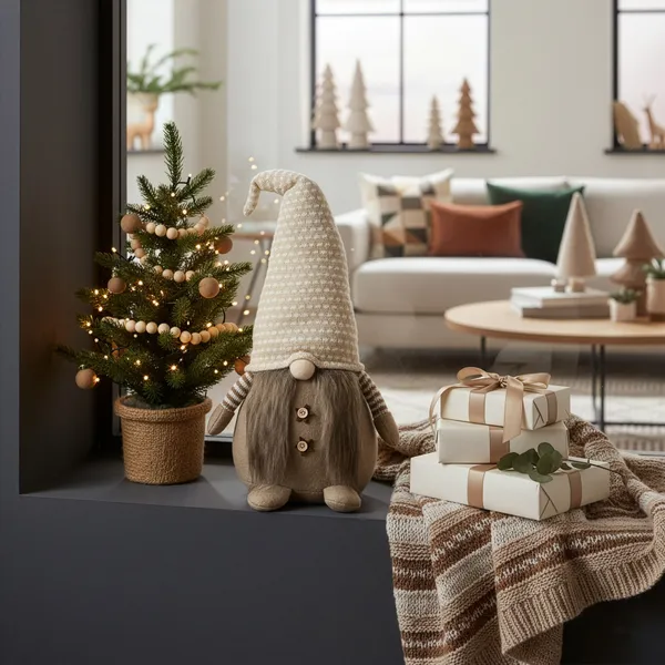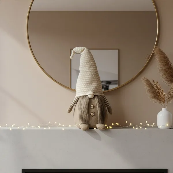 Teremts meleg, skandináv karácsonyi hangulatot ezzel a puha textil manóval, amely bármely polcon, komódon vagy ablakpárkányon jól mutat. A dróttal merevített sapka könnyen formázható, így gyorsan az adott dekorációhoz igazíthatod, és évről évre újra felhasználhatod.