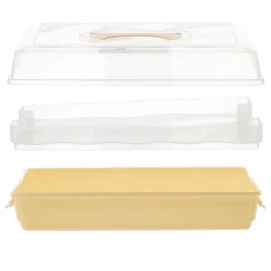 Átlátszó, stabil zárású műanyag doboz, mely frissen és sértetlenül tartja a krémes süteményeket szállításkor, ráadásul többször használható és könnyen tisztítható.