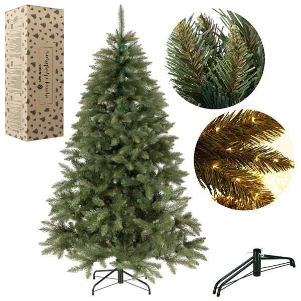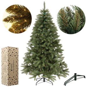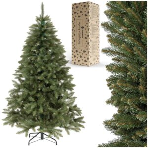 Élethű, 200 cm-es Kaukázusi műfenyő kétszínű, sűrű PVC levelekkel és stabil fém talppal, amely gyorsan összeszerelhető és éveken át megőrzi tökéletes formáját, így minden karácsonykor időt és pénzt takarít meg.