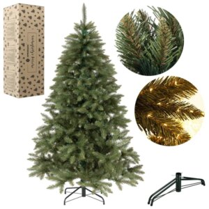Az ünnepi hangulat alapja egy élethű, könnyen formázható műfenyő. A 200 cm magas, Kaukázusi lucot idéző fa sűrű, kétszínű PVC tűlevelekkel és masszív fém állvánnyal érkezik, így hosszú évekig használhatod otthonod díszeként.