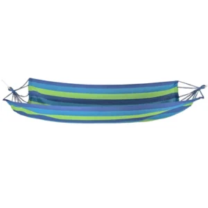 Kényelmes pihenéshez tervezett, divatos kék csíkos függőágy, amely tökéletes választás a kertbe, teraszra vagy kiránduláshoz. Pamut-poliészter keverék anyaga puha tapintású, mégis strapabíró, így hosszú távon élvezheted a ringatózást.