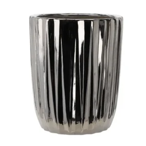 Az ezüst színű, bordázott felületű kerámia kaspó látványos fókuszpontot teremt bármely elegáns nappaliban, irodában vagy recepción. Magas, 48,5 cm-es kialakítása miatt ideális nagyméretű, dús levélzetű szobanövényekhez, ugyanakkor kifinomult fényesen csillogó máza modern karaktert kölcsönöz a térnek.