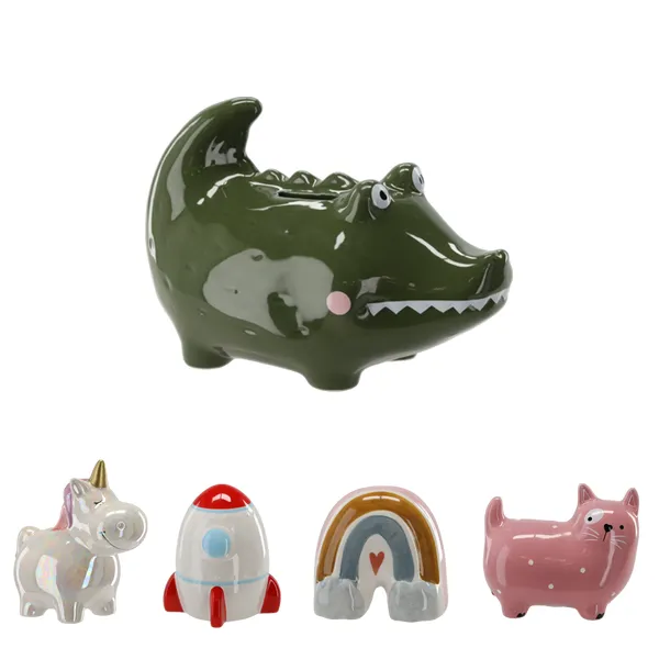 Vidám mintákkal díszített kerámia persely, amely motivál a takarékoskodásra, miközben dekoratív kiegészítője a szobának. Praktikus gumidugóval a megtakarítás könnyű kivételéhez.