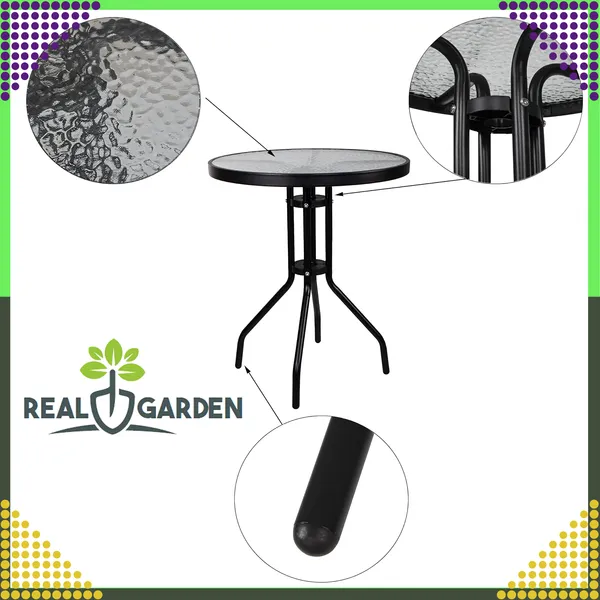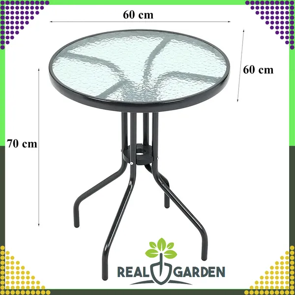Az 5 mm vastag, edzett üveglap és a porszórt acél váz időjárásálló kombinációja hosszú évekre garantálja a kültéri kényelmet. Kompakt 60 cm-es átmérőjével kis erkélyen is elfér, mégis elegendő helyet kínál a kávénak és harapnivalóknak.
