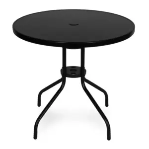 Kerek kerti asztal 80 cm edzett üveg lappal, napernyőnyílással, fekete