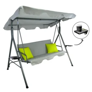 Kerti 3 személyes acél hintaágy 170×118×153 cm lime párnákkal, pohártartóval