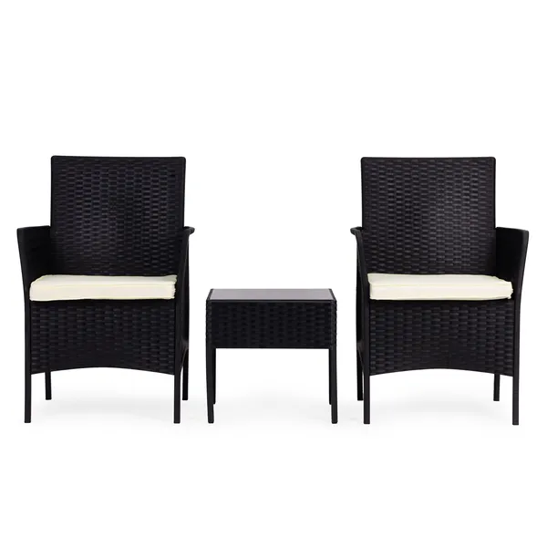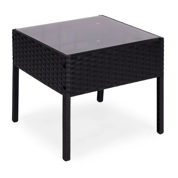 Kerti bútorszett 2 főre: 2 fotel, edzett üveglapú asztal, rattan, fekete