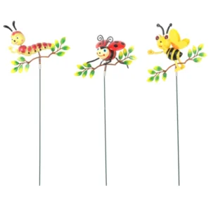 Frissítsd fel erkélyedet vagy virágágyásodat ezzel a vidám, bogárkás kerti díszpálcával! A masszív fémpálcára egy ágacska és rajta egy hernyó, egy katicabogár vagy egy méhecske került, élénk, időjárásálló festéssel, ami ellenáll az esőnek és a napfénynek.