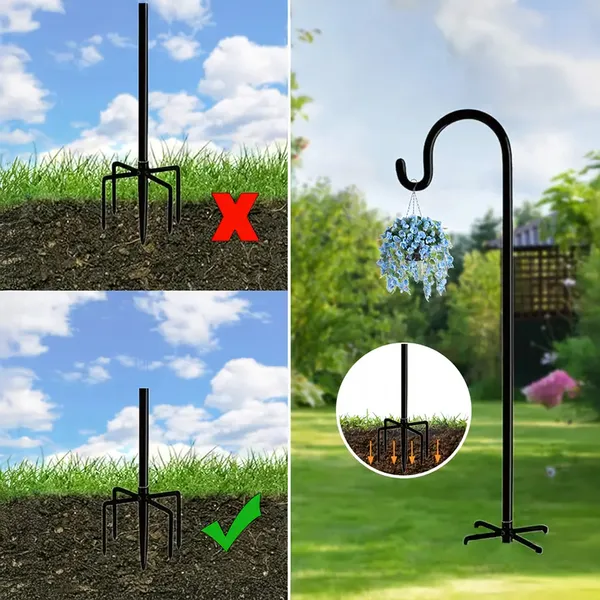 Rendezze el kertjét stílusosan és praktikusan ezzel a 120 cm magas, leszúrható kerti akasztóval. Ideális választás függesztett növényekhez, madáretetőkhöz vagy hangulatos kerti lámpásokhoz – stabilan rögzíthető a talajba, így ott használhatja, ahol épp szüksége van rá.