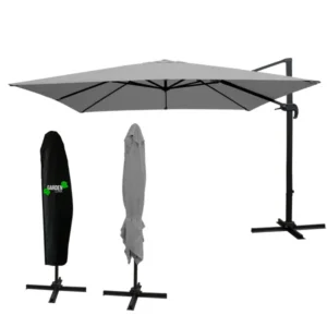 A porfestett alumínium és acél szerkezet erős, mégis könnyen kezelhető; a kurblis nyitás-zárásnak, az állítható dőlésszögnek és a 360°-os forgatásnak köszönhetően pillanatok alatt az Ön igényeihez igazítható. A csomag tartalmazza a fekete poliészter védőhuzatot is, amely meghosszabbítja a napernyő élettartamát tárolás közben.