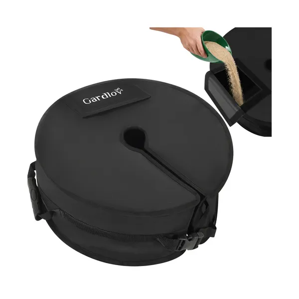 A szél könnyen tönkreteheti a kerti pihenést: az imbolygó napernyő nemcsak kellemetlen, hanem a felszerelés sérülésének kockázatát is növeli. Ez a homokkal tölthető napernyőtalp stabil, biztonságos rögzítést ad: feltöltve akár 40 kg súlyt biztosít, hogy a napernyő egy helyben maradjon.