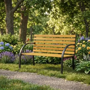 Kényelmes kültéri pihenőhely kertbe, teraszra vagy erkélyre, természetes fa ülőfelülettel és stabil acélvázzal. Időjárásálló kialakítása, háttámlája és csúszásgátló talpai biztonságos, tartós használatot nyújtanak a mindennapokban.