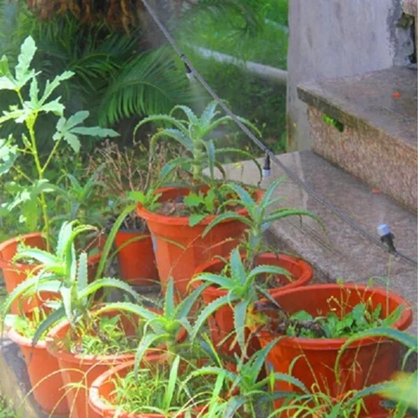 Frissítse fel a kertet és csökkentse a hőséget egy könnyen telepíthető, 15 méteres vízfüggöny/párásító öntözőrendszerrel. A 15 darab szórófej egyenletes vízpermetet biztosít, így ideális teraszra, pavilonhoz, kerti pihenőhelyre vagy akár növények finom párásításához.