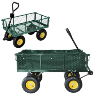 Kétfunkciós zöld kerti szállítókocsi 300 kg, 95×50×25 cm, felfújható kerekek