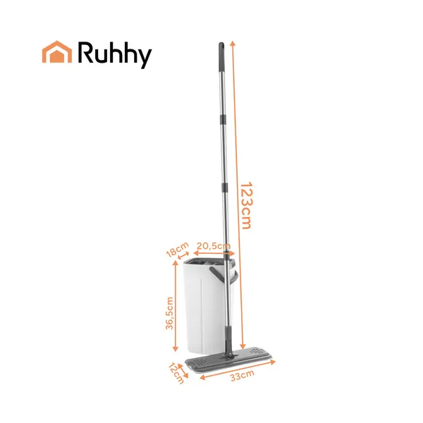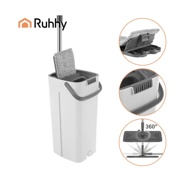A kétkamrás vödörrel mindig tiszta vízzel moshatsz fel, miközben a szennyeződés külön részben marad. A kézmentes csavarás és a 360°-ban forgó lapos fej gyorsabbá teszi a takarítást bútorok alatt és sarkokban is, a 3 mosható betét pedig kényelmes tartalékot ad.