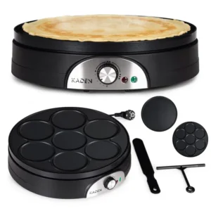 KADEN elektromos palacsinta- és crêpe sütő 1500 W – készíts otthon bármikor vékony crêpe-et, aranybarna amerikai palacsintát és más lepényeket. A tapadásmentes bevonatnak és a levehető, kétoldalas sütőlapnak köszönhetően gyorsabban dolgozhatsz, kevesebb zsiradékkal, és a tisztítás is egyszerűbb.