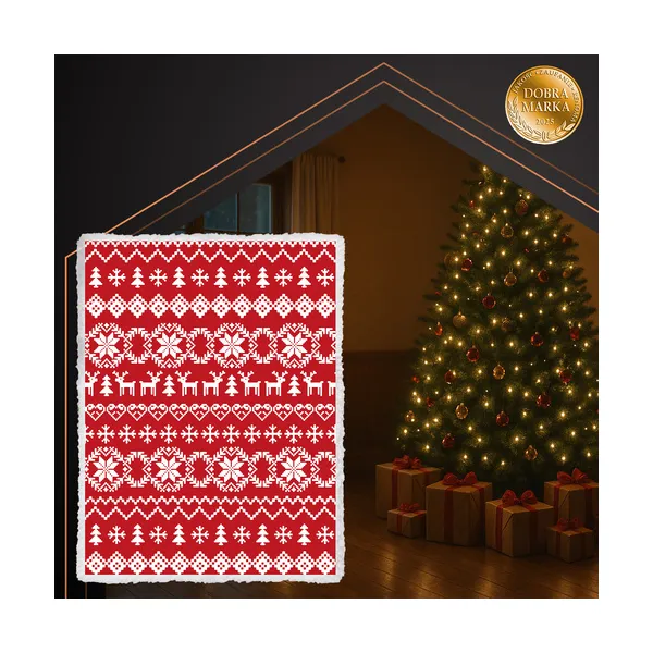 Kétoldalas karácsonyi pléd 130×170 cm, piros-fehér, meleg