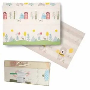 Kétoldalas összecsukható XPE habszivacs játszószőnyeg 150×200 cm, mackó és fa mintával