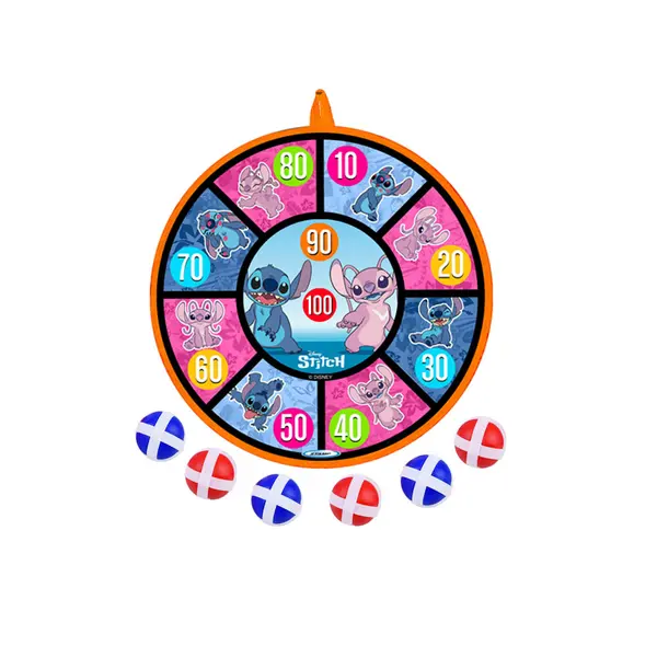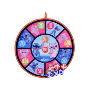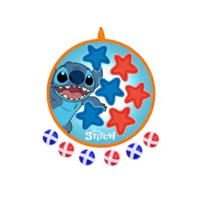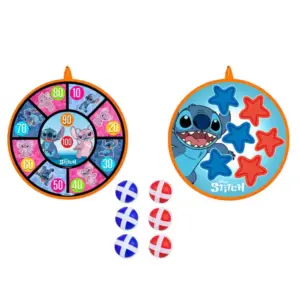 A színes, Stitch mintás tépőzáras célbadobó tábla remek elfoglaltság gyerekeknek: mozgásra ösztönöz, miközben fejleszti a pontosságot és a szem–kéz koordinációt. A puha felület és a könnyű labdák biztonságos alternatívát nyújtanak a klasszikus darts helyett.