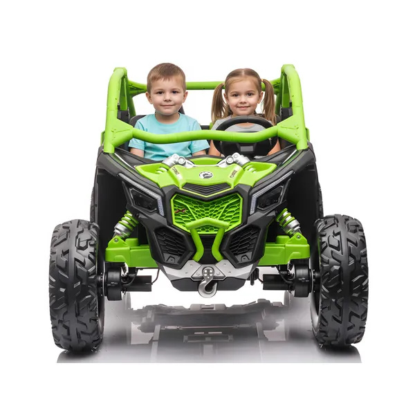 A kétszemélyes, terepre tervezett elektromos buggy izgalmas választás minden kis sofőr számára. Kényelmes dupla üléssel, rugózással és négykerék-meghajtással készült, így egyenetlen talajon is élvezetesebb és stabilabb haladást biztosít.