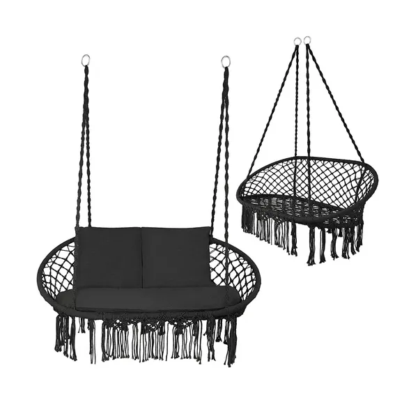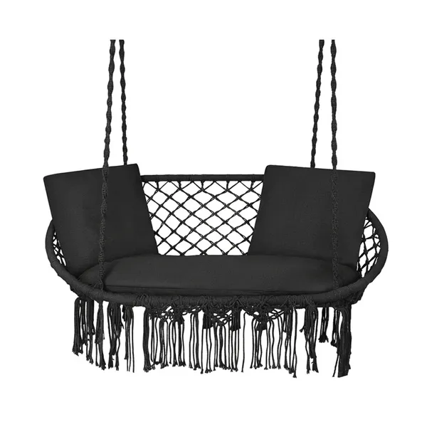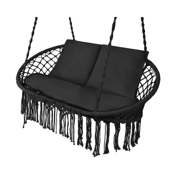 Kétszemélyes fekete függő hintaágy párnákkal, 300 kg