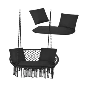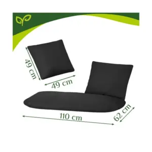 Puhább, stabilabb ülőfelületet ad a kétszemélyes gólyafészek hintához, így kényelmesen pihenhettek akár hosszabb ideig is. A 3 részes szett (nagy ülőpárna + 2 kispárna) 30°C-on mosható, a fekete szín pedig könnyen illik a modern teraszhoz és a kerthez.