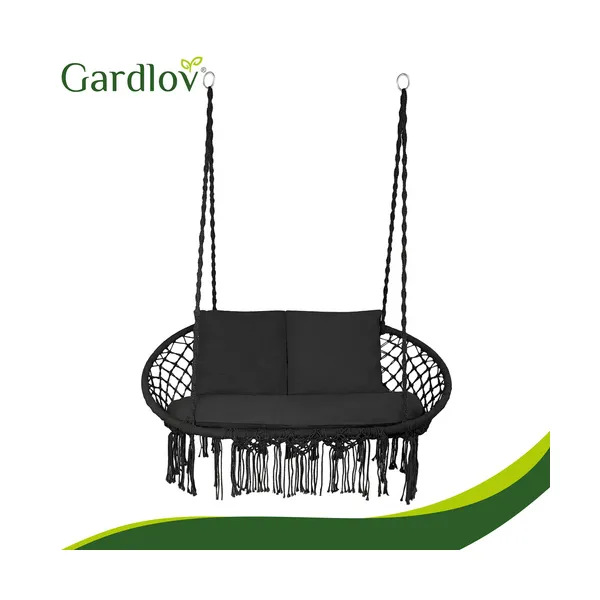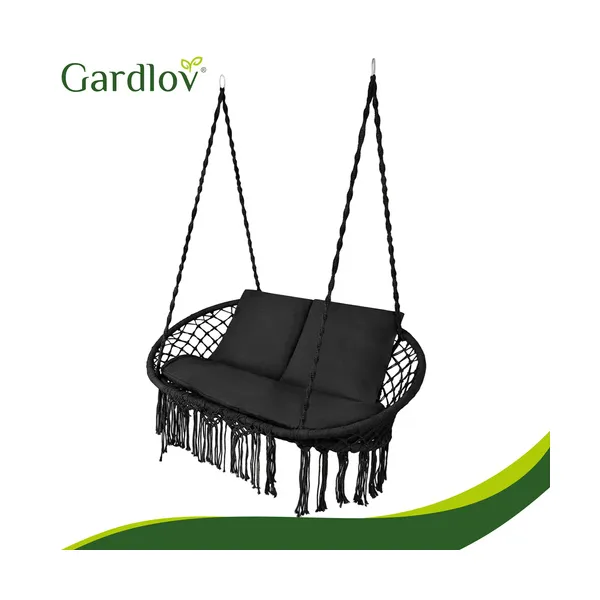 Kétszemélyes gólyafészek hinta párnaszett, fekete, 3 részes, mosható