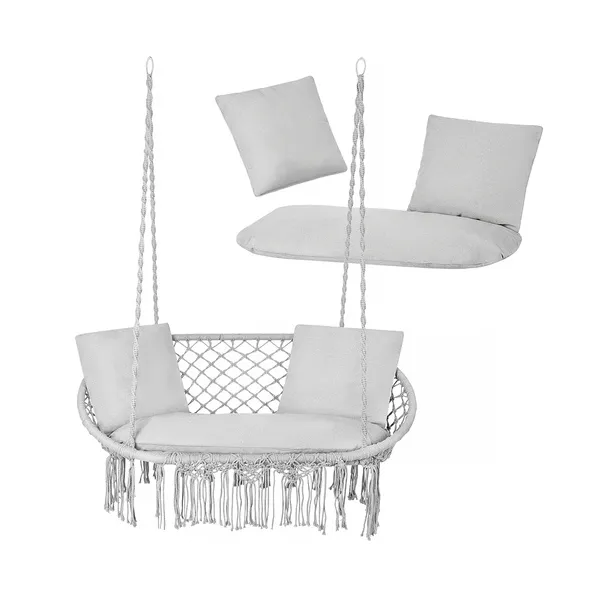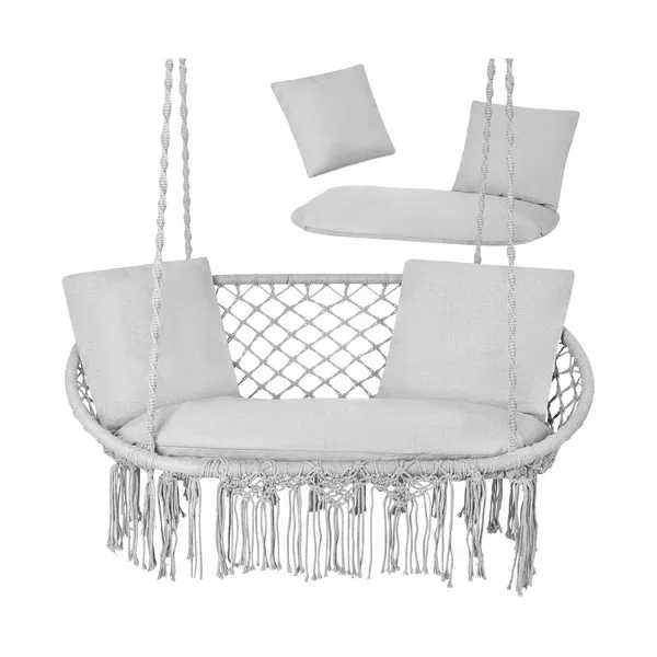 Élvezd a nyugodt pihenést a kertben, teraszon vagy akár bent is: ez a kétszemélyes gólyafészek hinta kialakításához készült, puha és stabil párnaszett kényelmesen megtámasztja a hátat és a fejet, miközben a vastag töltet felveszi a test formáját.