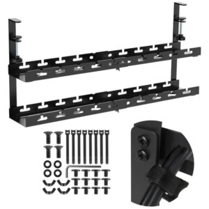 Messzemenően rendet tehetsz az íróasztalod alatt ezzel a kétszintes kábelrendezővel, amely megóv a lógó elosztók és gubancolódó vezetékek látványától. A 433–728 mm között szerszám nélkül állítható sínnek köszönhetően bármilyen otthoni vagy irodai asztallaphoz illesztheted, a 5 kg teherbírás pedig biztosítja, hogy még nagyobb tápegységek, routerek is stabilan maradjanak.