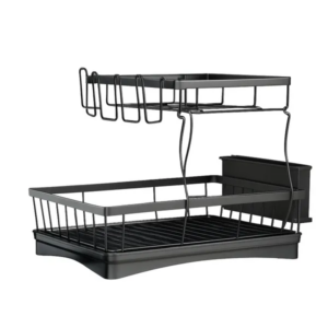 Kétszintes fekete edényszárító, automatikus vízelvezetéssel, 33×42,5×30 cm