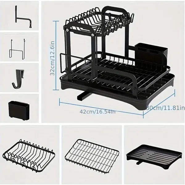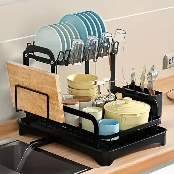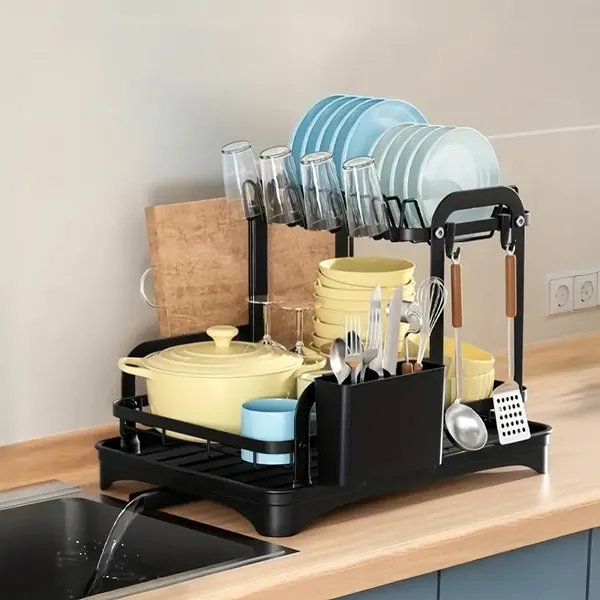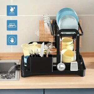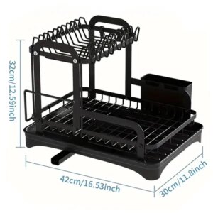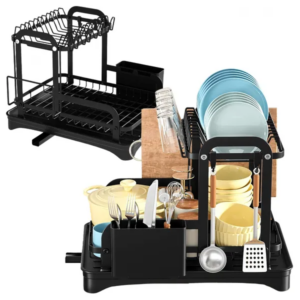 Kétszintes, nagyméretű edényszárító csepegtető lefolyóval – praktikus megoldás, ha szeretnéd rendezetté tenni a mosogató környékét és gyorsabban megszárítani a tányérokat, bögréket, evőeszközöket.