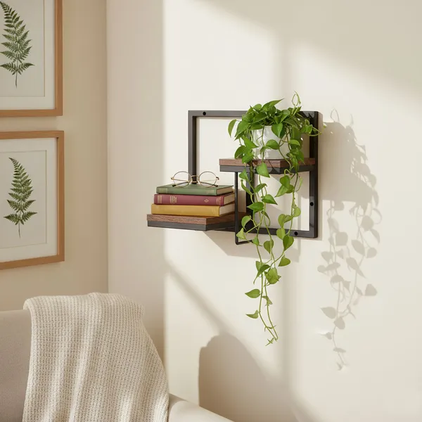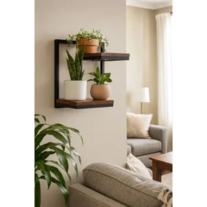 Dobd fel otthonod ipari-loft hangulatát ezzel a kétszintes fali növénytartó polccal, amely egyszerre dekoratív és helytakarékos megoldás kedvenc virágaid, fűszernövényeid vagy illatos kiegészítőid számára.