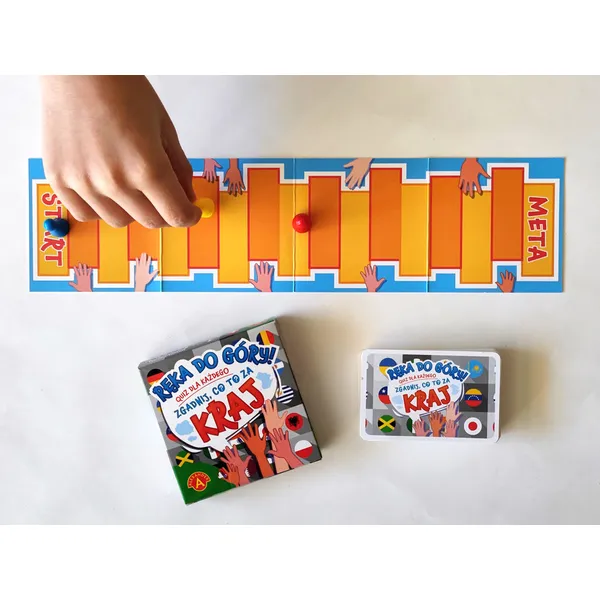 A Kézfel nyert egy pörgős, országismereti kvíz társasjáték 8 éves kortól, amelyben a leggyorsabban reagáló játékos léphet előre a táblán. Húzz egy kártyát, adj egyre több nyomot, és emeld fel a kezed, ha tudod a helyes választ! Minél korábban találod el az országot, annál több mezőt haladsz előre.