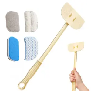 Kézi tisztítószivacs nyéllel, amely megkönnyíti a fürdőszoba és a konyha mindennapi takarítását. A kialakítás segít elérni a nehezebben hozzáférhető helyeket is (például csempefugák, zuhanykabin szélei), így gyorsabban és kényelmesebben dolgozhat.