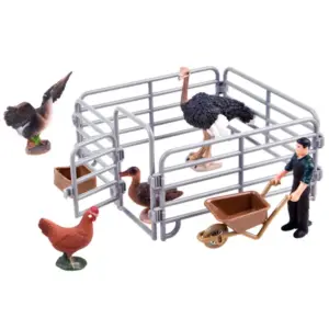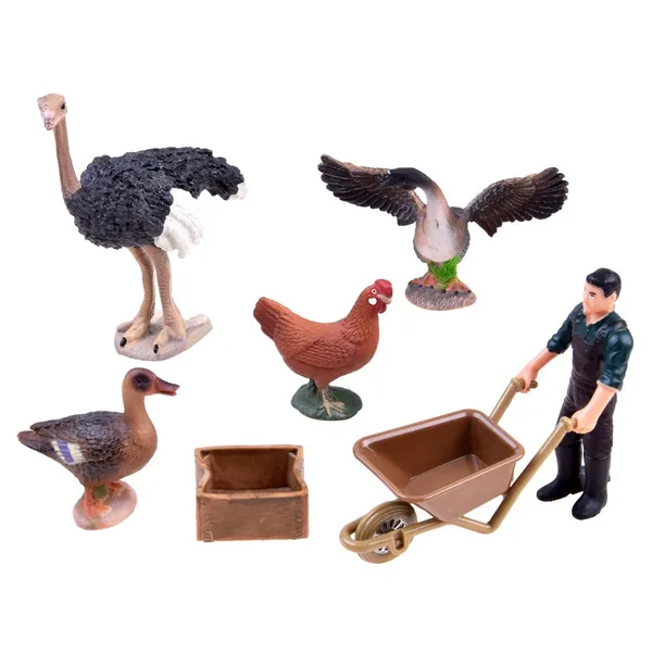 Kézzel festett farm állatfigura szett struccal, gazdával és madarakkal