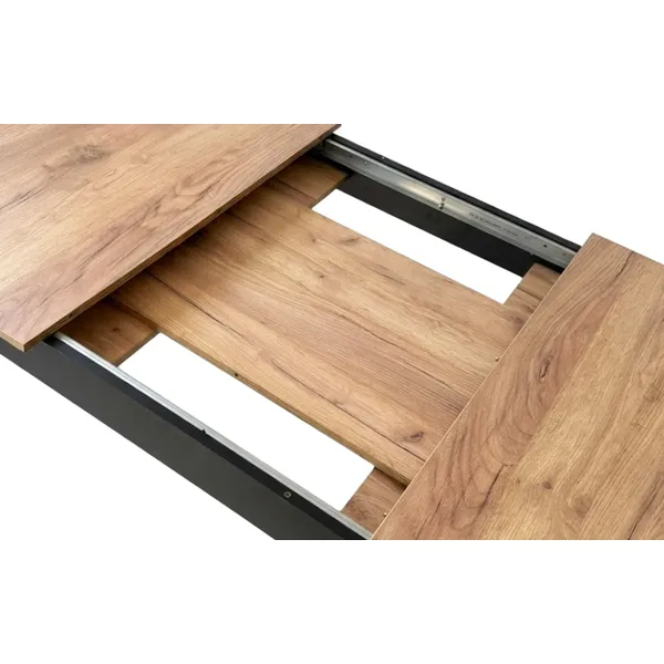 Az asztallap MDF lapból készült, PVC bevonattal, tölgy hatású felülettel. Ez a kialakítás természetes, meleg megjelenést biztosít, miközben a felület ellenállóbb a mindennapi használat során fellépő karcokkal szemben, és könnyen tisztán tartható.