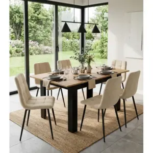 A craft tölgy asztallap és a fekete lábak kombinációja letisztult, korszerű megjelenést ad, amely jól illik modern, loft és klasszikus enteriőrökbe is. Tökéletes közös reggelikhez, családi ebédekhez vagy baráti összejövetelekhez.