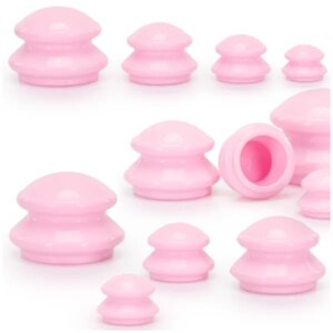 Négy méretű (S–XL) gumiharangos köpölyöző készlet, amellyel több testrészhez is könnyen igazítható a kezelés. A rugalmas anyag kényelmes fogást ad, használat után pedig egyszerűen tisztítható meleg vízzel és kímélő tisztítószerrel.
