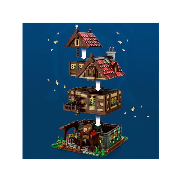 Merülj el a lovagkor hangulatában ezzel a 2868 darabos építőkocka-készlettel, amelyből részletgazdag, kétszintes középkori fogadót építhetsz.
