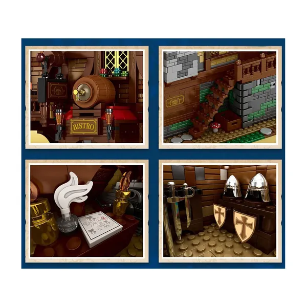 A 2868 darabos építőkocka-készlet részletgazdag középkori fogadót varázsol eléd, miközben az építés élménye fejleszti a kézügyességet, a türelmet és a kreativitást. Az elkészült fogadóban órákon át tartó izgalmas szerepjátékok, bátor lovagi lakomák és családi történetmesélés vár.
