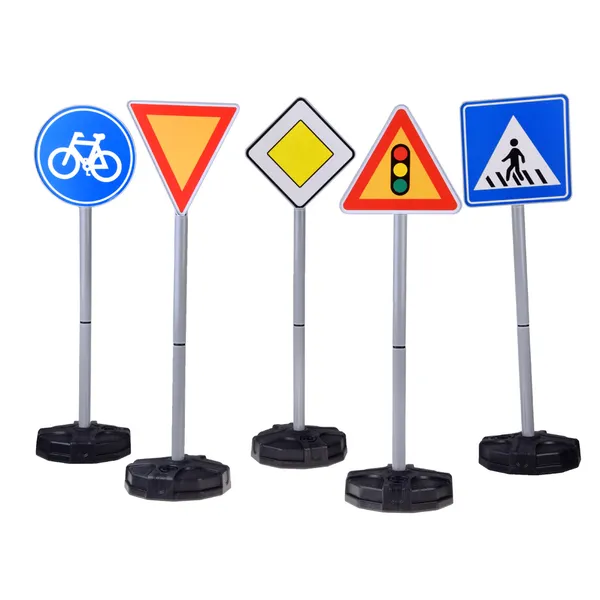 Ismerd meg a közlekedés alapjait játék közben! A 77 cm magas, 5 darabos közlekedési tábla készlet már 3 éves kortól segít a gyerekeknek elsajátítani a közlekedési szabályokat, miközben a kertben vagy a nappaliban játszanak.