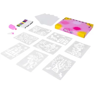 A pumpás festőkészlet élénk színekkel, újrahasználható sablonokkal és könnyen kezelhető festékszóróval teszi varázslatossá a rajzolást; fejleszti a finommotorikát, miközben határtalan kreativitást biztosít a 3+ éves gyerekeknek.