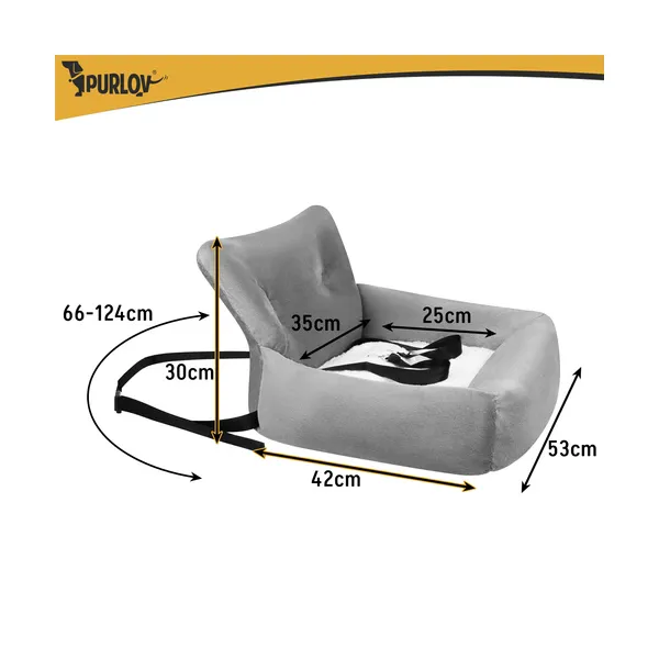 Kutyás autósülés L 53x42x30 cm, vízálló, szürke, 4 kg-ig