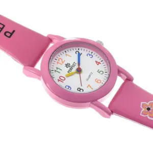 Ez a bájos, rózsaszín gyermek karóra kifejezetten a színes és esztétikus kiegészítőket kedvelő kislányok számára készült. A rózsaszín tok és szíj kedves, játékos megjelenést ad, míg a kontrasztos fehér számlap megkönnyíti az idő leolvasását, így ideális választás azoknak is, akik még csak most ismerkednek az órával.