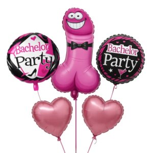 Lánybúcsú lufi szett, pénisz alakú 81,2 cm + 2 szív + 2 feliratos, 5 db