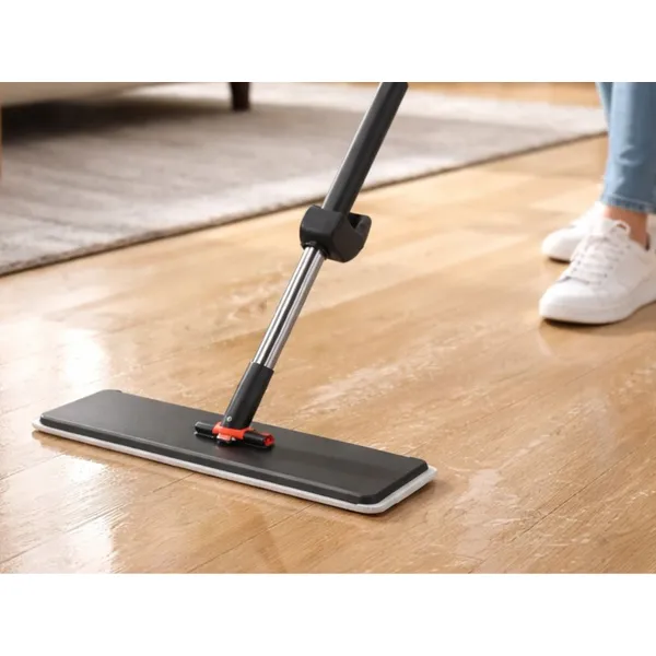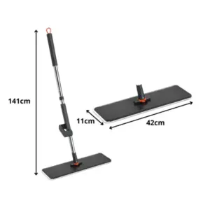 Lapos mikroszálas felmosó teleszkópos nyéllel és forgó fejjel, amely megkönnyíti a mindennapi takarítást a lakás bármely pontján. A mikroszálas pad hatékonyan összegyűjti a port és a szennyeződést, miközben kíméletes a felületekhez, így a padló tiszta marad csíkok és víznyomok nélkül.
