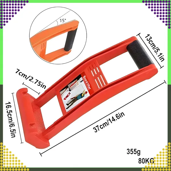 Az ergonomikus fogantyúval egyetlen mozdulattal megemelheted és mozgathatod a faforgács-, OSB- vagy gipszkartonlapokat akár 80 kg-ig, így kíméled a hátadat és felgyorsítod a munkát. Kompakt mérete miatt mindig ott lehet a szerszámosládádban.